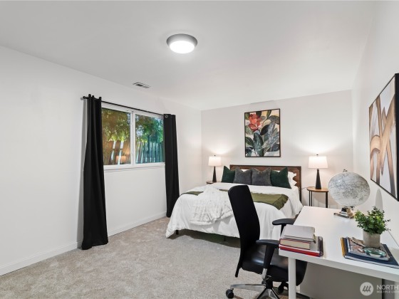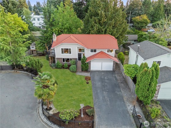 Stunning home in quiet cul-de-sac, airy interior features include vaulted ceilings, tons of natural light. New calcutta quartz kitchen counters, updated bathrooms & fixtures. Premium laminate hardwood’s and carpet throughout, fresh exterior & interior paint! Sizeable ensuite primary bedroom plus 2 additional beds on main level. Spacious 2nd bedroom on lower-level. Great bonus room space or additional living space for guests/tenants! Spacious private yard, fully-fenced, deck perfect for entertaining. Large 2-car garage, ample parking. Top-rated schools! Easy access to I-5, convenient transit, walkable to LIGHT RAIL station, Interurban/Burke-Gilman Trail, shopping & parks!