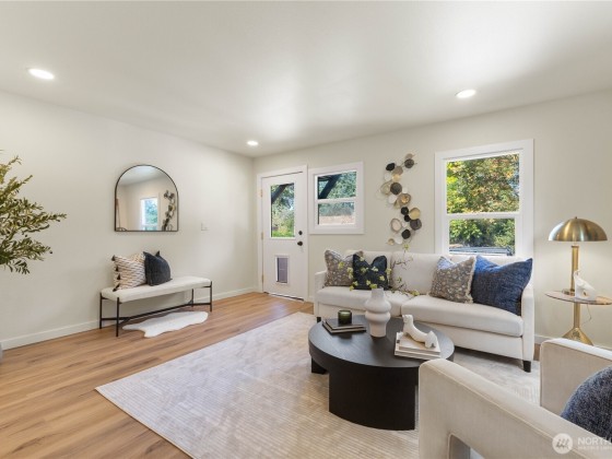 Fully remodeled charmer on an expansive lot with alley access! Bright living areas and a large bonus room offer flexible space for work or play. Stunning modern finishes throughout create true move-in comfort. Enjoy a new patio, detached garage, carport, and room to garden, entertain, or expand. Conveniently located on a quiet street just a short walk to amenities and quick access to Seattle and Sea-Tac. A rare find with space and lifestyle in one!