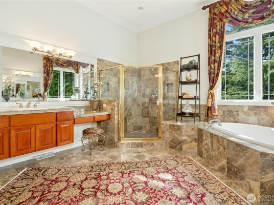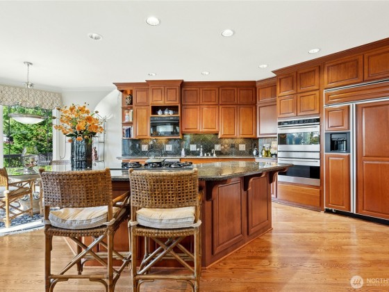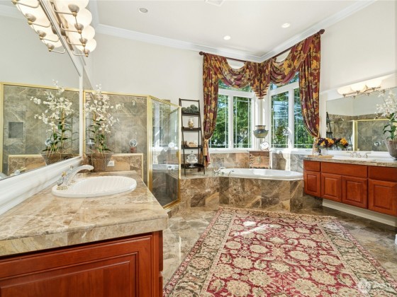Welcome to an exquisite multi-generational 5 BR/5BA residence spanning 5,520 sq ft including the primary suite and a second BR on the first floor. The main floor features elegant formal and informal spaces, wood-paneled office and butler’s pantry with wet bar and wine closet. An elegant curved staircase leads to two upstairs bedrooms, each with a private bath and a cozy sitting/play area. The lower level includes a spacious BR with full bath, a versatile great room with a large wet bar, and 2 more rooms for exercise, play, or study. New DaVinci roof in 2025. Convenient access to I-90 & 405, downtown Bellevue/Seattle/Sea-Tac airport. The Summit is a coveted community with security, a clubhouse, work out room, two pools and tennis/pickleball.