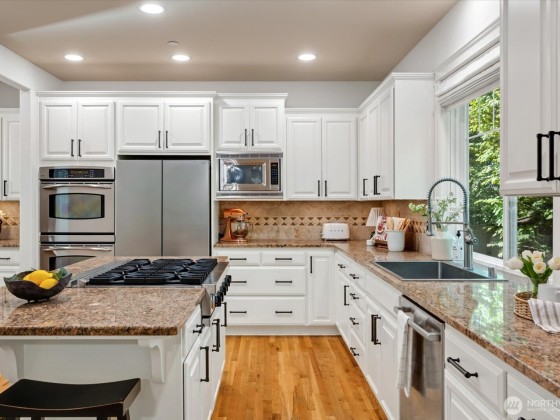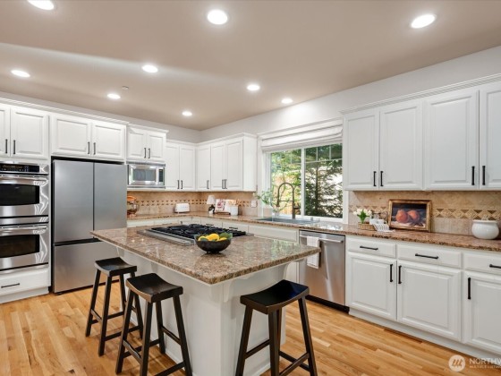 Welcome to this spacious 5-bed, 2.75-bath Redmond retreat with rare 3-car garage and bonus room. The floor plan that everyone is looking for! The chef’s kitchen features a large island, sleek stainless steel appliances, and large walk-in pantry. Coveted main-level bed and bath offer flexibility, while rich hardwood floors flow throughout, complementing the custom limestone fireplace & built-in Bose speakers in the family room. The luxurious primary suite boasts a marble dual-head shower, soaking tub, and walk-in closet. Step outside to a private backyard oasis with a soothing stone waterfall. Minutes to DT Redmond, top-rated schools, parks, trails, freeways. This home blends refined interiors with peaceful outdoor living. Welcome home!