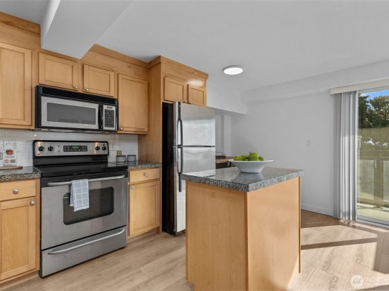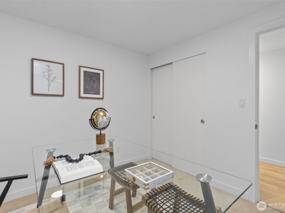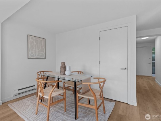Welcome to this stylish 2 bedroom in Queen Anne. Enjoy easy living with brand new floors, fresh paint throughout, new light fixtures, and views of downtown from your private patio. The open layout is perfect for entertaining, and you'll love the convenience of in unit w/d, plus your own assigned parking spot. No rental and pets allowed, this condo offers flexibility for homeowners and investors. Just steps up the hill from shops and restaurants, parks, and plenty of Queen Anne stairs, this is urban living at it's best! Well run HOA with no special assessment!