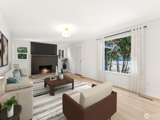 Become a Homeowner in 2025! Take advantage of first-time homebuyer programs. Move right in. Ideal downtown location - just steps from amenities, dining, shopping, Seattle ferry. Head-to-toe updates: new roof, furnace, windows, flooring, paint, plumbing, + garage door w/opener—all the big-ticket items are done! Inside, modern fixtures complement the cozy wall-to-wall fireplace with bold accent wall, while the brand-new kitchen offers ample storage, stylish finishes, and direct access to one of two decks. Spacious bedrooms invite natural light and seamless indoor-outdoor living. Partially finished lower level with laundry provides flexibility to design your ideal bonus space. Fresh, modern, move-in ready—this is Bremerton living at its best!