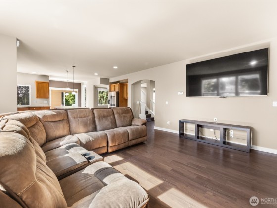 Crafted with care, filled with light, and perfectly placed at the end of a quiet cul-de-sac—this home has it all! Step inside to soaring entry ceilings, fresh interior paint, rich hardwood floors throughout the home, an office with clear light french doors, a flex room, and a convenient ¾ bath on the main. The open kitchen and living room glow with natural light and a cozy gas fireplace, creating the heart of the home. Upstairs, find all bedrooms, including a spacious primary suite with 5pc bath & WIC, plus a vaulted bonus room. A finished 3-car garage and private backyard offer space to relax or entertain. Just minutes from Hwy 410 & Bonney Lake—don’t miss this one!