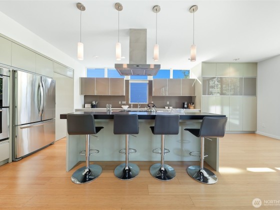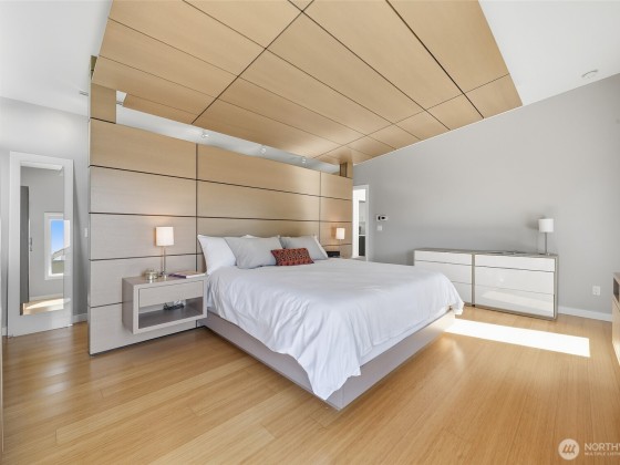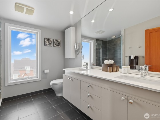 Modern. Custom. Stunning. Thoughtfully designed for seamless indoor-outdoor living and exceptional natural light, the expansive main level features wall of windows, sleek bamboo floors, a private office/den, and a chef’s kitchen that flows to deck and a private yard. Upstairs, luxurious primary suite offers custom paneling, generous walk-in closets, and spa-like finishes. Two additional bedrooms, a full bath, and convenient laundry complete the second floor. Lower level with incredible media/golf-sim room, heated concrete floors, guest suite, storage, and an oversized garage. Ideally located within walking distance to Magnolia Village this home blends modern sophistication and everyday comfort in one of Seattle’s most coveted neighborhoods.