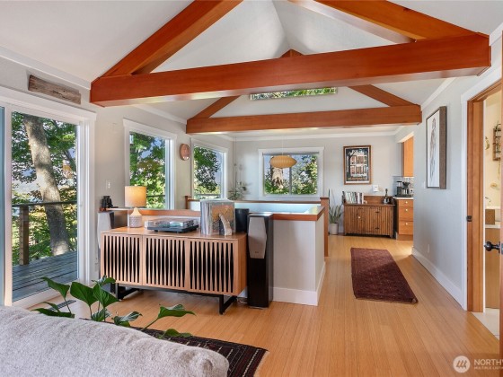 “Treehouse” South Hill retreat with endless views of the San Juans & Bellingham Bay! Vaulted fir-beamed ceilings, skylights, chef’s kitchen & primary on the main. Lower level offers flexible living, plus an additional lower-level suite with separate entry ideal for office, gym, guest suite, or 4th bedroom. Recent updates include furnace, water heater, updated plumbing & fresh finishes. Multiple decks & porches invite true indoor/outdoor living-start the day with sunshine, gather for summer meals, and unwind with spectacular sunsets and sailboat races. Fully fenced, dog-friendly yards, abundant storage, & two secure bike storage areas. Walkable to Fairhaven, Downtown, trails & waterfront, all in a highly sought-after South Hill neighborhood.