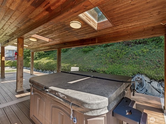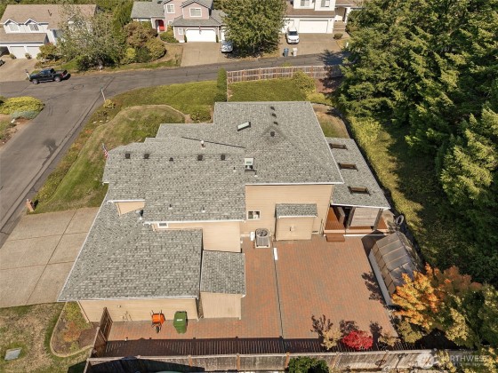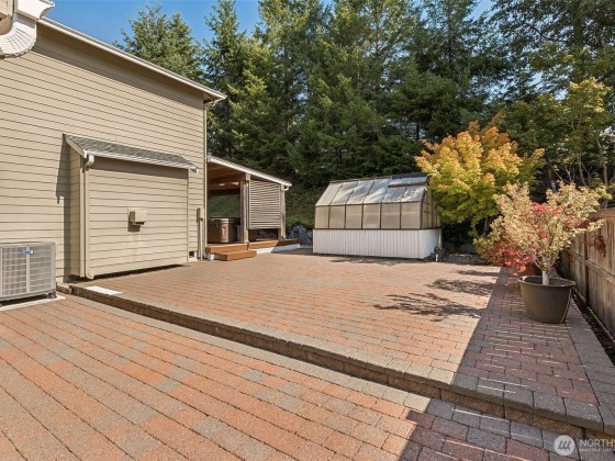 Remodeled upstairs w/hardwood & upgraded carpet | Italian-inspired kitchen w/Franke sink, prep sink & authentic butcher block | Spa-style primary suite w/soaking tub, frameless shower, built-ins & gas fireplace | Loft w/skylights & built-ins | Heated floors in kitchen & primary bath | Insulated/sheetrocked garage w/gas heater | 13 windows('18)/French Door replaced | Roof ('17), exterior paint ('18), water heater ('16) | A/C ('22) & furnace ('24) w/transferable warranties | Full irrigation | Covered deck w/3 skylights | Windows, roof, gutters, pavers, deck exterior cleaned | Greenhouse, shed, hot tub & fenced yard | Built by Murray Franklin. Some images virtually staged, digitally enhanced, or include visual markers for illustration.