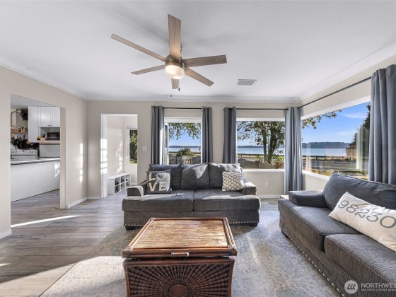 Overlooking Drayton Harbor, with sweeping views from Semiahmoo to White Rock BC, this fully fenced , 2 bed 2 bath bungalow is the perfect blend of comfort & affordable coastal charm. The easy layout is enhanced by a newer roof, expansive tilt-turn windows that frame the water, a tastefully renovated main bath complete with a heated bidet, & new tile flooring throughout. Step outside to fully embrace the lifestyle - unwind on the 2nd-story deck of the garage/potential ADU while the ocean breeze drifts in, or gather on the front patio to share Blaine’s unforgettable sunsets. Prime location w/in minutes of US/Cnd border & I-5 access, this coastal charmer won’t last long! LOAN ASSUMPTION may be available for buyers of this listing.