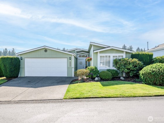 Exquisite opportunity in serene & prestigious, gated 55+ community. Embrace the lifestyle you've dreamed of! Move-in-ready, its timeless elegance offers an elevated living experience, characterized by natural light, traditional charm & modern sophistication precisely where it matters. This specific home displays breathtaking views of Mount Rainier from your living, dining and patio. Classic yet contemporary one level home presents thoughtful design for your season of life. Hosting a seamless blend of comfort & accessibility it embodies a pristine property reflecting meticulous care: pre-inspected & subsequent repair report available. Community clubhouse events for extroverts, seclusion for introverts, RV parking available for road trippers!