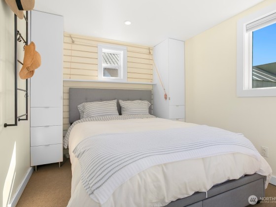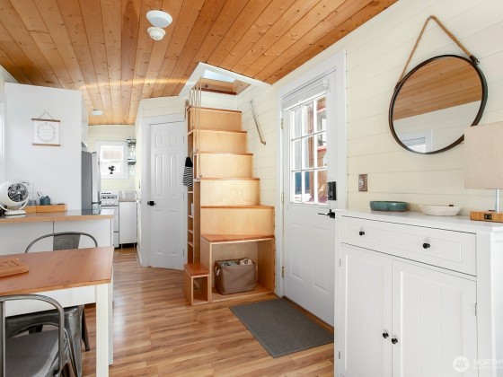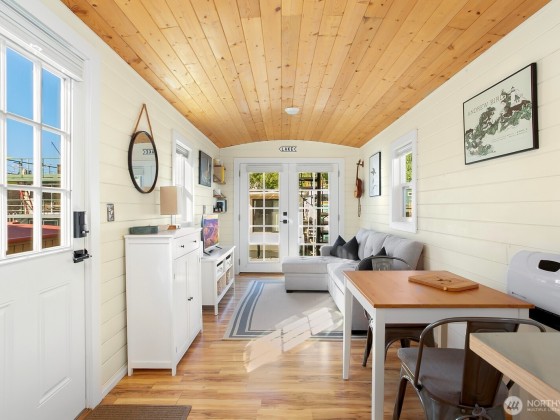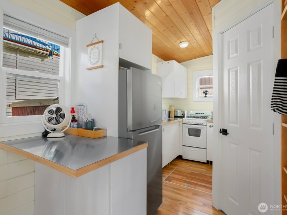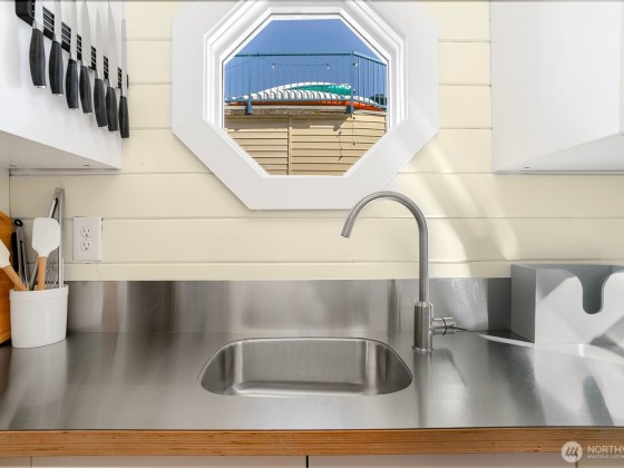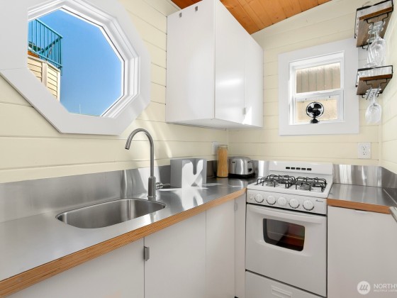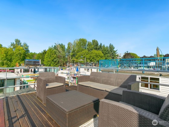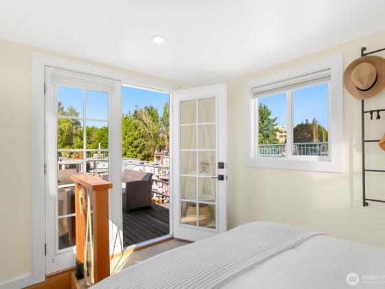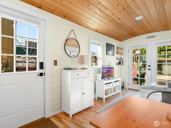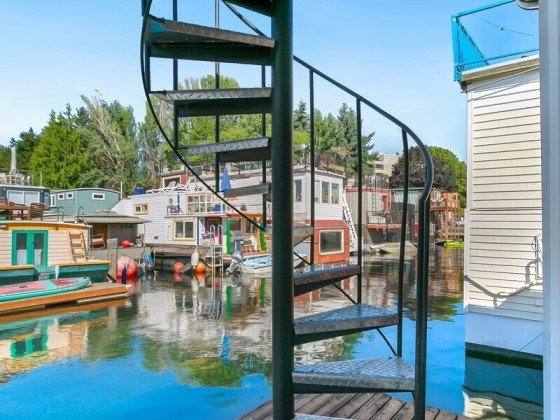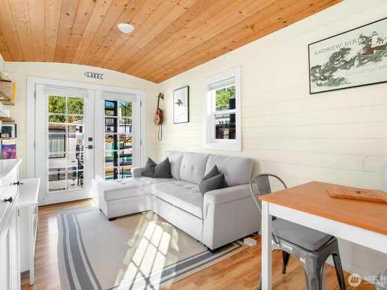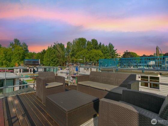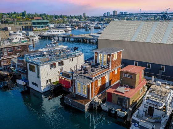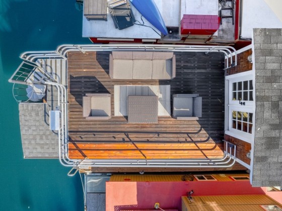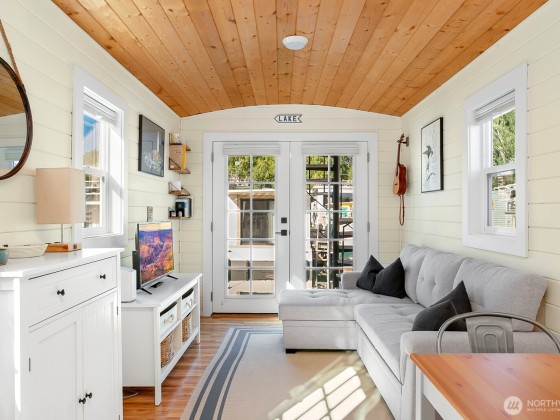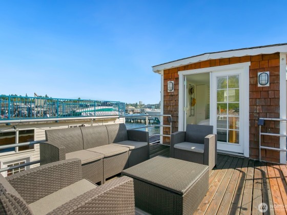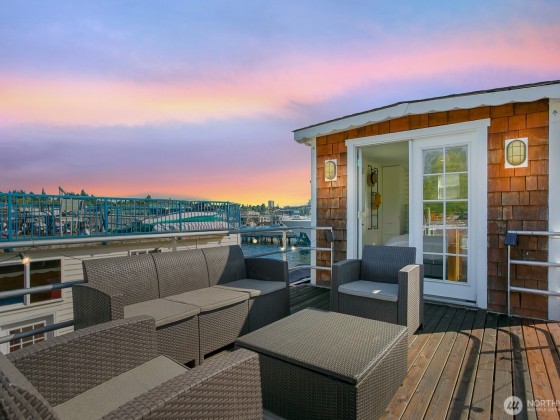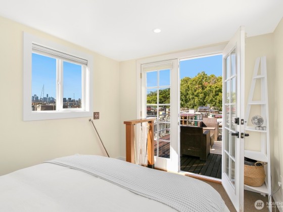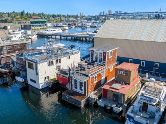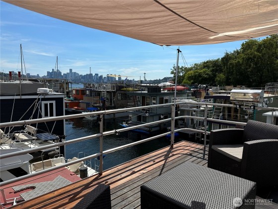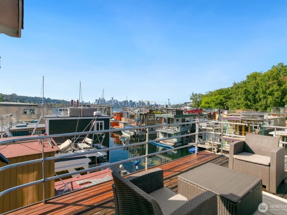 All aboard for home-sweet-home! Find unparalleled comfort and modern details on this 410-square-foot houseboat with owned moorage. Docked at the enviable Gas Works Park Marina, enter into a bright, Scandi-inspired living room just above the waters of Lake Union. The open floor plan leads to a dining space and a well-equipped kitchen for all of life’s feasts; also standing by on the main floor is a ¾ bath, and a staircase leading upstairs. There, find a spacious bedroom or home office bathed in light. Just off the bedroom, the spacious deck maintains an air of tranquility among commanding views of the lake and city skyline. With cedar details, an aluminum hull, and access to the nearby Burke-Gilman, life in this houseboat is smooth sailing.