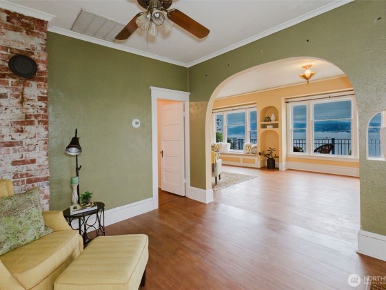 Enjoy some of the best views in Port Orchard—Sound, marina, mountains, ferries, and city lights. Step back in time with this 1912 charmer offering character and modern updates. Curved doorways, brick details, and timeless style pair beautifully w/upgraded finishes. Offering 4 bedrooms, 3 bathrooms plus extra rooms/storage, soaring ceilings and updated baths. Lot of opportunities to fix up the basement as extra living or guest space. Also a huge fenced yard that opens to the street behind, garage & storage, RV space, and abundant parking. Situated on 4 city lots with future multi-use potential in the heart of the city just up the hill from downtown. Catch the foot ferry a couple blocks away to Bremerton for access to Seattle ferry commute.
