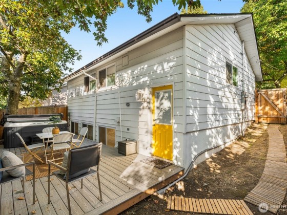 Two homes on one lot! Package includes a front home 123 MLK: 3 Bedrooms, 1.75 bath, 1400 SqFt with a den/office nook. Enjoy main floor with hardwood floors, open kitchen design. Lower level primary suite with 3/4 bathroom. Laundry and bonus den/office nook. Newer back deck plus a hot tub, and fenced front yard for garden beds. Back home 125 MLK is a detached DADU 970 SqFt finished and separately fenced: 2 bedrooms on the main + a full bath, open living/kitchen plan, upstairs primary suite with its own walk-in closet & attached bathroom, plus a private patio. Two off-st parking spaces. A smart investment to your portfolio, or perfect for live in one and airbnb the other; or Idea: consider co-housing and buy with your bff! Incredible value!