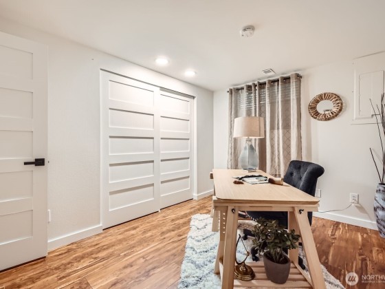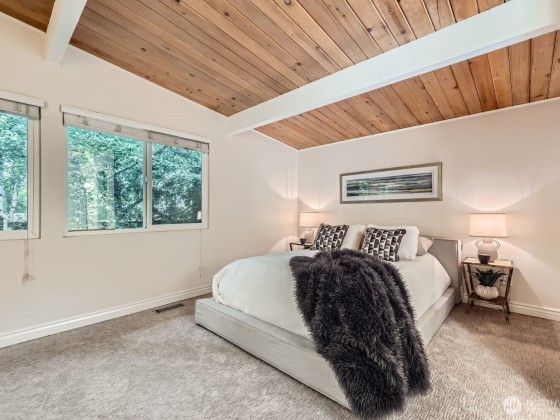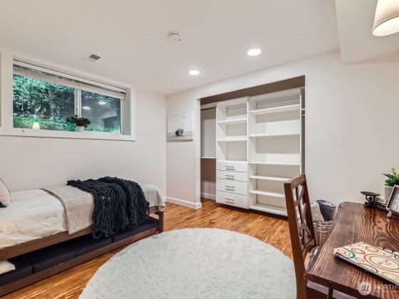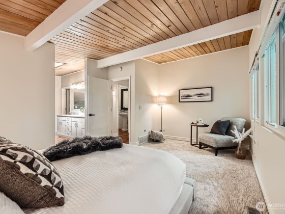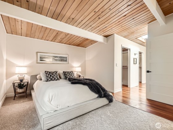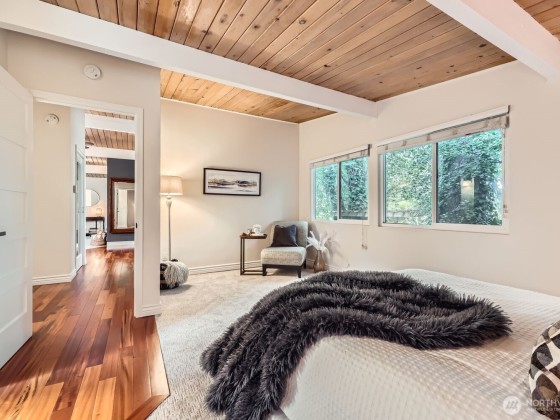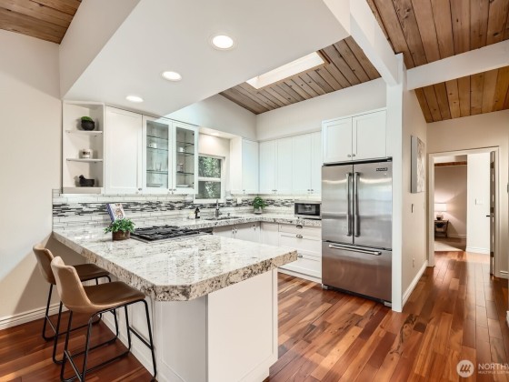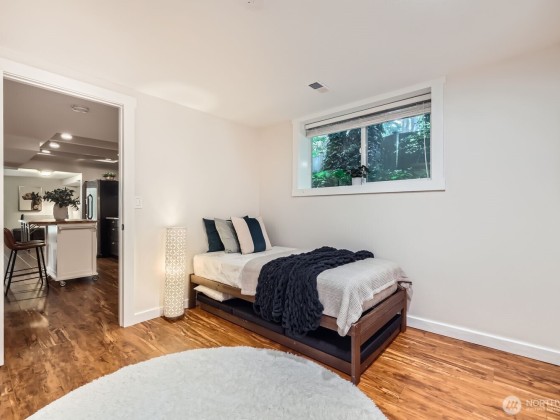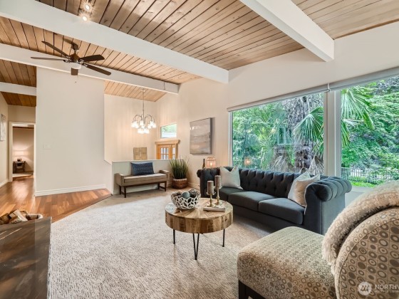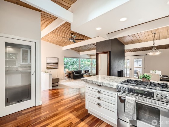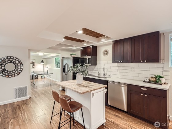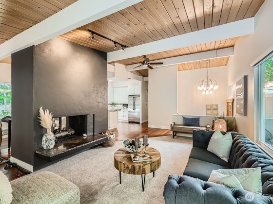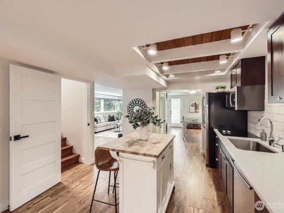 Meet the savviest buy in Kirkland AND .75% mortgage rate discount available! Prime location with flexible lower-level ADU—ideal for rental income, multi-gen living, or Airbnb. Walk to Google, the marina, and downtown dining. Open floor plan features soaring ceilings, exposed beams, and wraparound windows for a bright, airy feel. Enjoy al fresco dining from the large deck. Chef’s kitchen with custom cabinetry, slab granite, and Brazilian tigerwood floors, with a large pantry. Vaulted primary suite with dual walk-ins and spa-like bath. ADU includes private entry, kitchen, laundry hookups, 2 beds, and large patio. 3-car garage + RV/ADU second driveway. Steps to Connector bike trail and the community garden across the street.