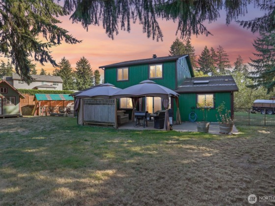Charming 2007 Milton home lovingly maintained by its original owners! Enjoy your morning coffee on the front porch swing while listening to the sounds of nature! This home offers a seasonal pond, rare lot size. Nearly an acre (.78) w/ TWO RV hookups, "she shed" w/ full bathroom, loft and mini fridge (potential for a DADU—perfect for multi-gen living). Inside, enjoy 3 bedrooms + den, 2.5 baths, and a main-floor primary suite with ensuite. Fresh updates include brand-new countertops, new carpets & freshly painted interiors. Home also includes a hot tub, air conditioner, on demand water heater and all gas appliances. Nestled on a quiet road yet mins to Seattle or Tacoma, this property blends small-town charm with city convenience. A must-see!