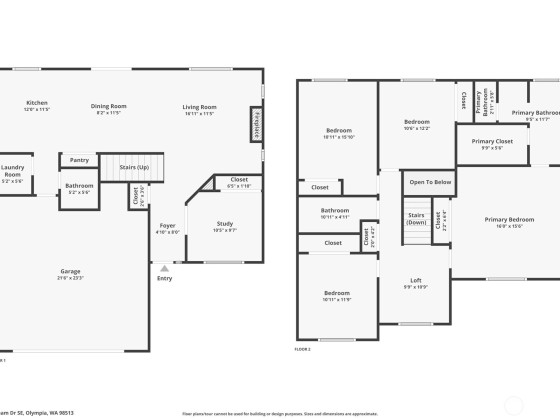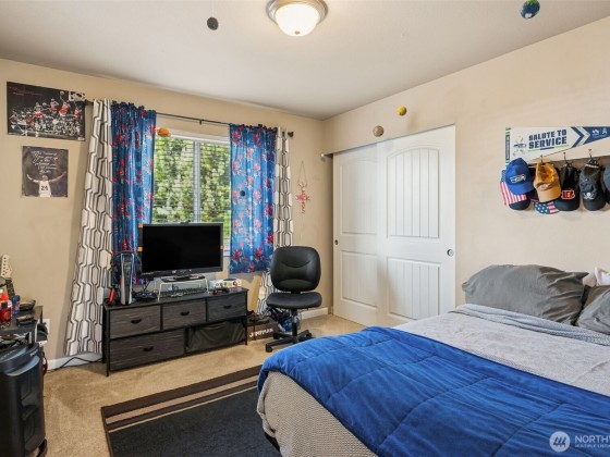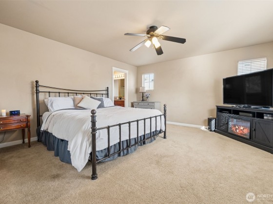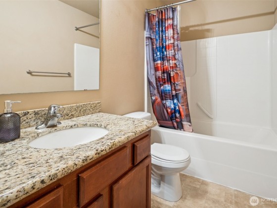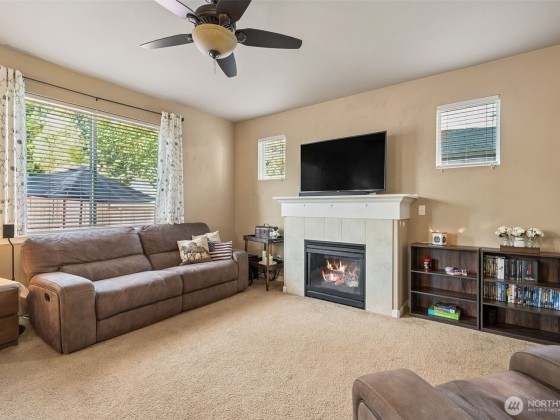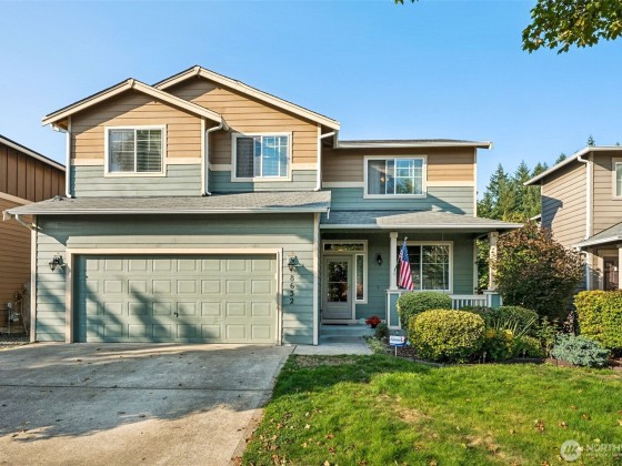 Welcome to a home that combines comfort and convenience! This spacious two-story offers 5 bedrooms, an open floor plan, and a two-car garage. The main level features a bedroom, an inviting living room with a cozy gas fireplace, and a beautifully appointed kitchen with granite counters, full-height backsplash, rich cabinetry, and a large island—perfect for gathering. Upstairs, you’ll find a versatile loft, three additional bedrooms, and a luxurious primary suite with a 5-piece bath and walk-in closet. The fully fenced backyard provides space to relax or play, while the neighborhood park is just a short stroll away. Ideally located minutes from I-5, Costco, and a quick commute to JBLM.