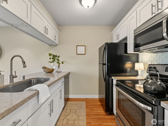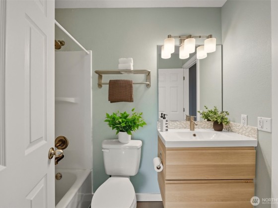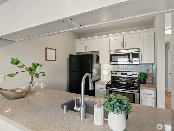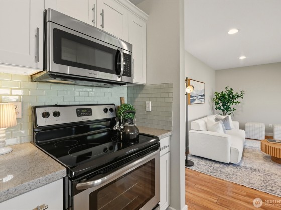 {{ Stylish Top-Floor Living in Renton Highlands!}} Step into this beautifully upgraded, turn-key 2BD home feat. a fully remodeled kitchen w/ quartz counters, shaker cabinets & designer glass tile backsplash. The spa-like bathroom, wide-plank floors & fresh paint create a light, modern vibe throughout. Enjoy a spacious living rm w/ cozy fireplace, a private balcony off the primary suite & a flexible layout filled w/ natural light. With two balconies, a large laundry rm, plenty of storage & HOA dues covering W, S & G, living here is effortless. Prime location near Lake WA, The Landing, Newcastle Commons, shopping, dining & easy freeway access to Bellevue & Seattle. Two assigned parking spots. Pre-inspected with no rental cap—move right in!