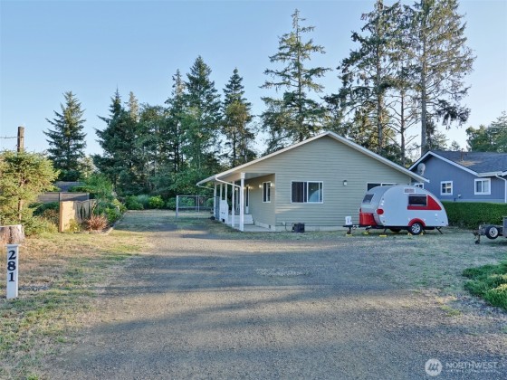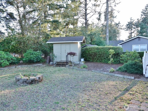 LOVELY HOME on a HUGE Lot with some views of the Bill Ellis Park on Duck Lake. Enjoy living in this Light and Bright Home on an extra-large lot with low-maintenance landscaping. Covered concrete walkway leads to the Front Deck and Entry. Enter into the Open Great Room with lots of windows for natural light. Heating and Cooling provided by the Ductless Heat Pump. Slider from the Dining Room to the Rear Deck and spacious Backyard. Comfortable living with 1,040 sq.ft., 2 Bedrooms, 1 Bath with walk-in shower, and a spacious Laundry Room with a 1/2-Bath and washer/dryer. Fenced Dog Area. Firepit and Storage Shed in the backyard. Hardiboard siding. You will love this charming home!