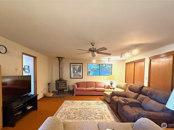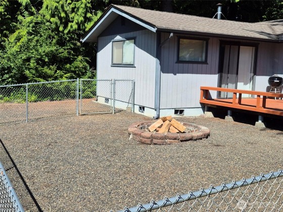 Amazing Location – Secure & Private Woodland Retreat, Nestled in a serene wooded wonderland, this charming and functional 1-bedroom cabin offers both space and character. The huge living room is perfect for relaxing or entertaining, while the spacious bedroom easily accommodates multiple sleeping arrangements. A large, character-filled kitchen provides abundant storage, and the full bathroom includes a washer and dryer for convenience. Enjoy outdoor living with a partially fenced yard, expansive deck, and cozy firepit. A covered carport offers ample parking, all set in a quiet and secure location—your peaceful escape in nature. Turnkey everything stays!