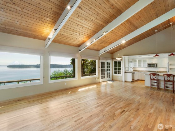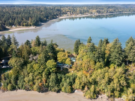 Rare opportunity to own on ultra-private South Head Peninsula, where homes seldom come to market. Boasting over 500 feet of waterfront on both sides, this property offers unmatched seclusion and is surrounded by pristine old-growth forest. The light-filled, east-facing home showcases breathtaking sunrises with sweeping views of Mt. Rainier and the Puget Sound. Inside, the open floor plan feels airy and inviting, with a spacious primary suite awaiting your vision and a generous guest suite with attached full bath. Step out to the expansive sundeck, complete with an outdoor shower, or follow landscaped paths that lead directly to your own private beach. A rare legacy property combining total privacy, natural beauty, and timeless tranquility.