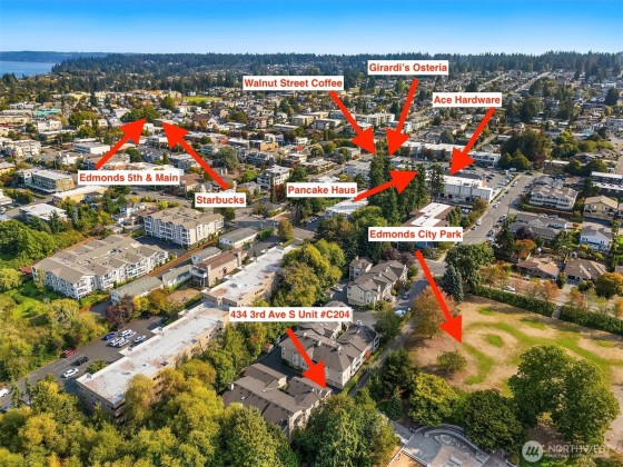 Enchanting Edmonds condo lives like a townhouse and is perfect for boaters, ferry commuters or anyone who appreciates the seaside Edmonds lifestyle! City Park views from the private balcony and an easy stroll to the waterfront, marinas, downtown shops and Walnut Street Coffee. Vaulted ceilings and tons of natural light. Stylishly updated full bath, stainless kitchen appliance suite, in-unit washer / dryer, 2-car tandem garage and a huge extra storage room. The ideal location and home for a carefree "lock and go" Edmonds lifestyle with outdoor concerts and festivals, boutique shopping, acclaimed restaurants, sprawling beaches and epic sunsets. Well run HOA with low dues and no rent cap in this quiet, pet friendly complex.