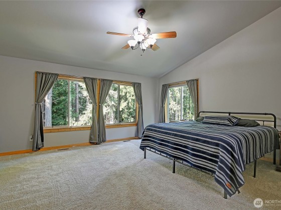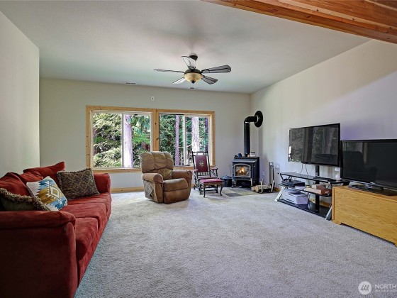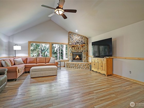 Spacious & beautifully updated home on almost 5 private acres in desirable North Camano! Loaded with features, this home offers exceptional flexibility w/ 3 bedrooms +3 additional versatile bonus rooms. Enjoy main floor living w/ a stylish kitchen boasting quality finishes, open layout & big deck perfect for entertaining. Huge primary suite w/attached en-suite bath & W/I closet. Daylight basement w/ big family room & separate entrance provides incredible possibilities for multigenerational living. Oversized utility room, fridge, & storage. Brand-new ROOF, furnace & shed w/ kennel. Outdoors, relax in privacy- Big yard surrounded by your serene greenbelt. Peaceful & secluded, yet minutes from parks, beaches, shops, I5 & more! Welcome Home.