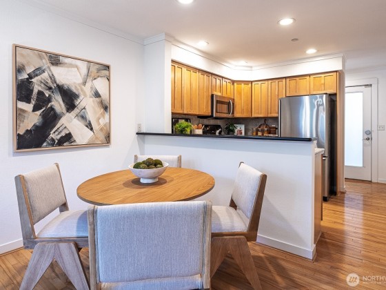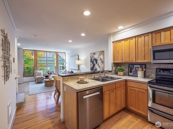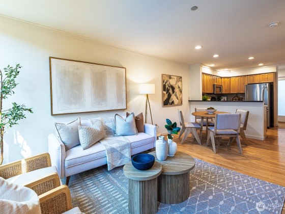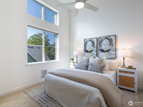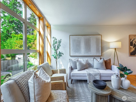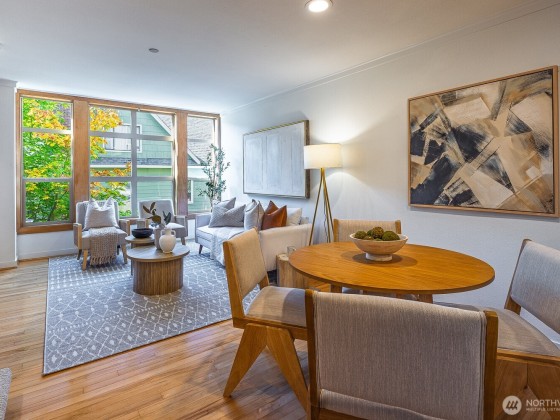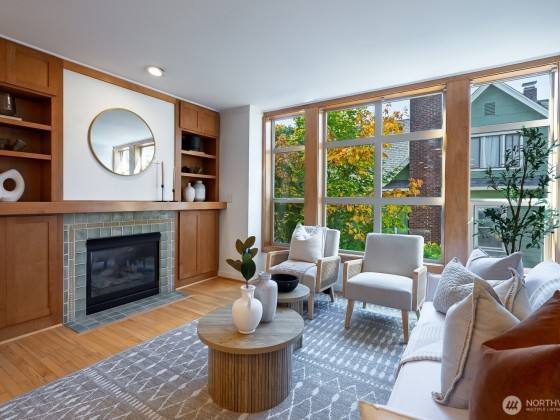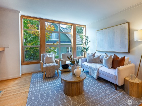 Stunning condo/townhouse located between Greenlake & Wallingford, perfect for commuters with convenient access to I-5, Aurora, or transit. Designed to feel like a spacious townhouse, this 2-bedroom gem includes a versatile flex space—ideal for a home office, media room, yoga studio, or extra storage. The open-concept main level features a cozy living room with abundant windows and superb westerly exposure, bathing the space in natural light. In pristine condition with low-maintenance upkeep, it ensures effortless living. Secure parking garage included. Steps from Greenlake's scenic trails and Wallingford’s trendy shops, cafes, & eateries, this home blends urban convenience with neighborhood charm. Don’t miss this gem!