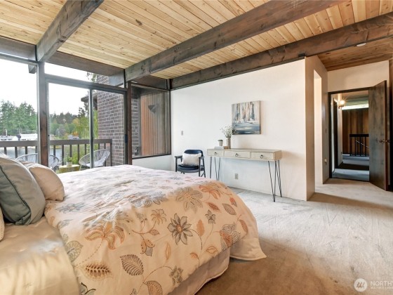 Discover timeless elegance and functionality in this custom mid-century lakefront home, where serene water views meet thoughtful design. Clean lines, expansive windows, & warm wood accents. All nestled behind a secure gated entry, this 4-bedroom, 3-bathroom sanctuary offers privacy along with a flexible basement suite ideal for a mother-in-law apartment, guest quarters, or rental income—complete with separate entrance & living space. Enjoy your private oasis with panoramic lake views, mature landscaping perfect for pets, play & entertaining. Lakefront living with direct access great for kayaking, paddleboarding or peaceful reflection. This generous lot may be eligible for subdivision/development. Buyer to verify.