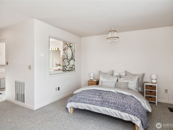 Imagine seeing the Olympics AND having a view of Admiralty Bay, Sound and shipping lanes!The 180 degree vista is seen from the LOWER Primary and Upper level bedroom as well as the Living Room and wrap around newly painted deck. Owner has newly installed flooring, great appliances,Primary and second bathrooms are updated. The Garage has a space for a work shop and is next to the utility room and storage pantry. The eat in kitchen opens to the large living room. HOA dues $300 a quarter to SBCA and$760 quarterly to Bay View Village