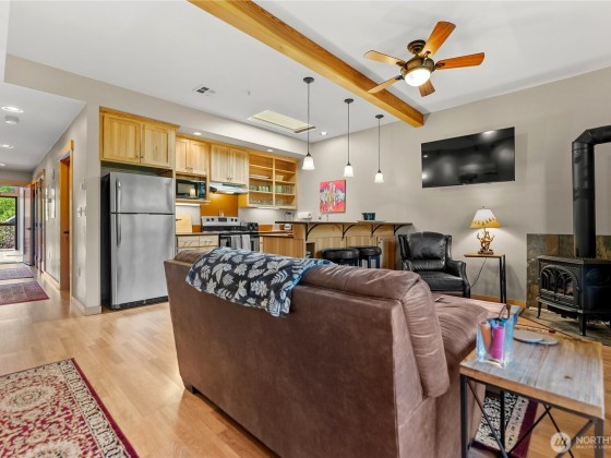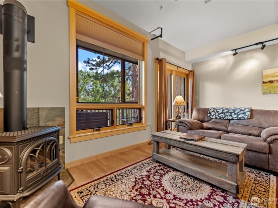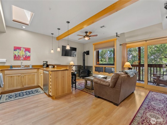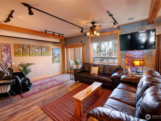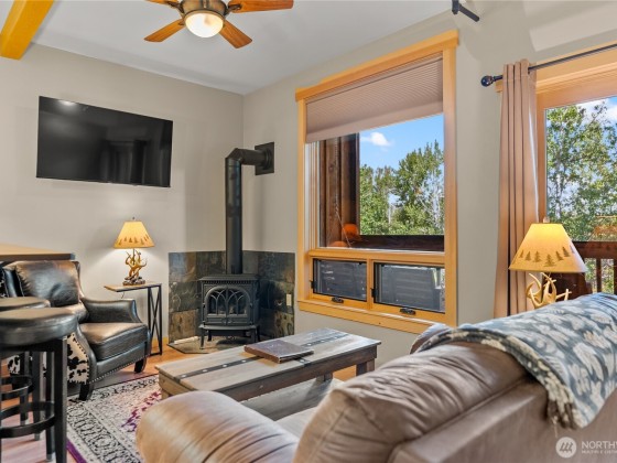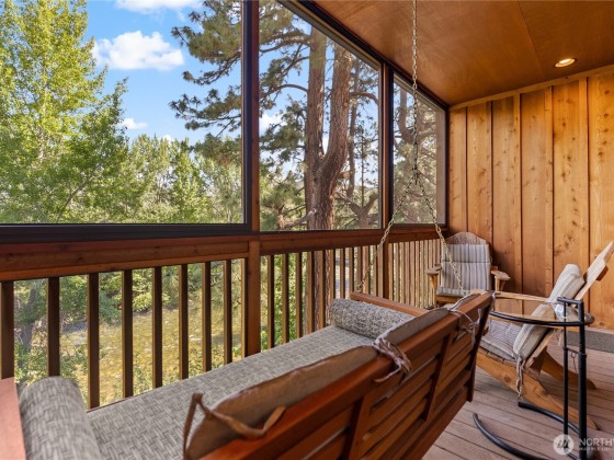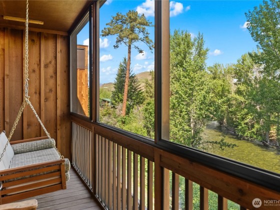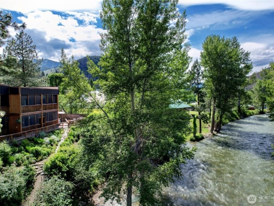 Legal nightly rental in the heart of downtown Twisp. Versatile 2 bed 2 bath configuration that can be rented to one or two parties increases your revenue capability. This 2nd story ready-to-rent suite features central air, a propane fireplace for cozy ambiance, a large soaking tub, full furnishings, window coverings, and a private screened deck with river views. Rent it out for income and stay between bookings for fun. Enjoy all Twisp River Suites (TRS) amenities: riverside hot tub, private beach, riverfront deck, and a guest lounge with bar during lobby hours. Just steps from the Farmers Market, Glover Street shops, TwispWorks, Merc Playhouse, and dining. Fully managed with a strong, established guest base through TRS.