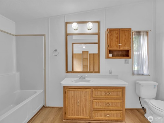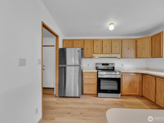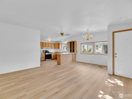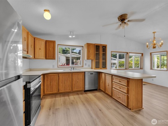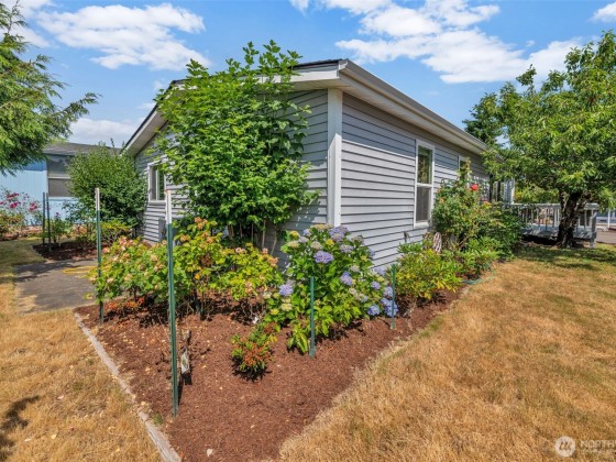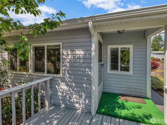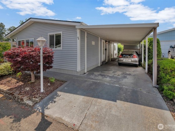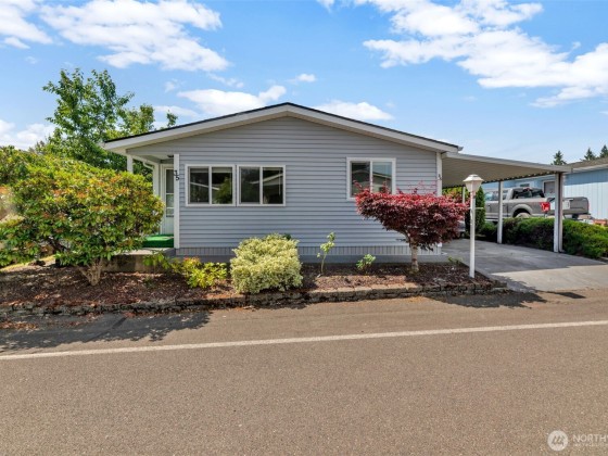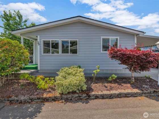 Zero Lot Rent in this Destination 55+ Community—Where You Own the Land! Tucked away in a quiet, well-maintained neighborhood with no land rent, this charming 2-bedroom, 2-bath home offers comfort, convenience, & community. Enjoy light-filled, open-concept living & dining space with vaulted ceilings that flow into a spacious kitchen. Recent updates include new flooring/new interior paint, new fridge/range, a newer roof, and an efficient heat pump for year round comfort. Outside, you'll find a generously sized wraparound yard with a large covered carport, front deck, private patio, and a roomy storage shed—ideal for hobbies or extra space. Located just steps from shopping and dining. Federal Way Link Extension is scheduled to open Dec-25