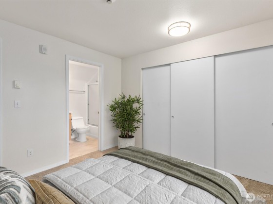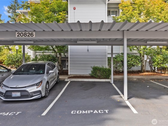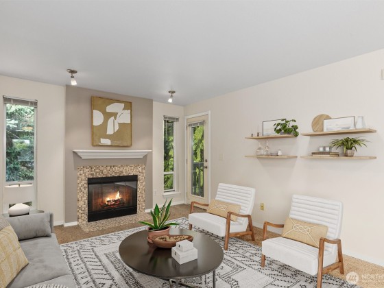 Beautifully refreshed top-floor end unit with bright, open spaces and modern updates. Ideally located near Edmonds College, shopping, and dining- this 2 bed/2 bath condo has a remodeled kitchen with extra island storage, a new refrigerator, and brand new carpet. Both bathrooms feature upgraded cabinets, counters and flooring and the laundry area includes a new washer/dryer with additional added storage. Relax in the living room with your fireplace or step onto the deck for a BBQ with treetop views and enjoy the breeze. This unit also has exterior patio storage, 2 parking spaces and includes a portable AC unit.