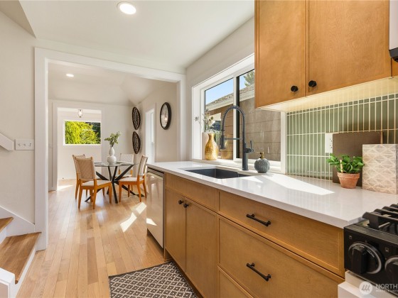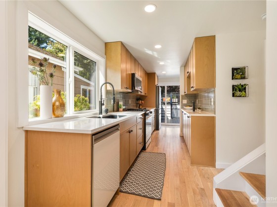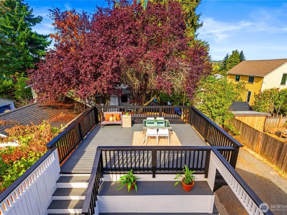 Welcome to this fully renovated home in a prime location 2 blocks from Greenlake, with versatile living options. Home features 4 parking spaces with 2 covered spaces, and mins to Tangletown & Greenlake dining & coffee shops. Upgrades totaling over $240K. Brand New kitchen with new quartz countertops, new 5 burner stove, new fridge, dishwasher. Brand, new ¾ inch thick hardwood floors, new interior paint. Completely renovated Primary and main bathroom. Enjoy Loft style primary bedroom that opens to upper deck with lake view, unobstructed views & no one staring at you from other homes. Electrical upgraded. Finished basement 570 square feet to convert to an ADU or AirBnb. Build an ADU in the back or subdivide lot? Buyer to verify all info.