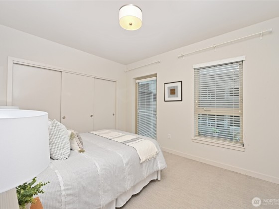 Enjoy life in the heart of Ballard with easy access to all its amenities. You will love this top floor with 8 1/2 ft. ceilings. A spacious 1 bedroom/1 bath with a long balcony. A very quiet corner unit in a newer building (2016) with on-site facility manager, gated garage parking, exercise room and garage storage space. Sensational, expansive roof top deck for entertaining and barbeque. A great building,with exceptional access to a plethora of restaurants, cafes, shopping and only minutes to downtown. Two pets allowed (dog/cat) with some restrictions. No rental cap.
