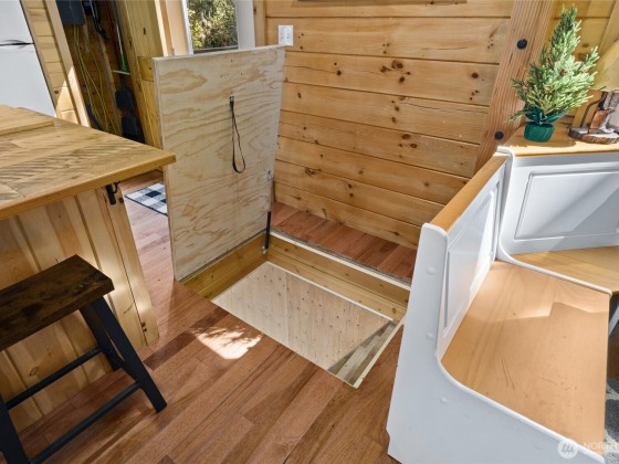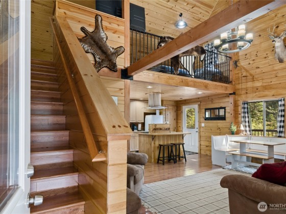 This off grid cabin offers true self-sufficiency with a fully automated propane system. The propane generator charges the battery bank, which powers the home through its invertor-ensuring seamless electricity, even in remote conditions. The lower level garage includes a dictated gear room for wet snow gear and a custom ladder-access hatch leading to a cozy upper-level living space allowing you to keep the cabin clean and dry after outdoor adventures. Comes fully furnished. Cabin is in a prime location with a roaring creek next door. Lake and community areas located just down the street. Starlink is available.
