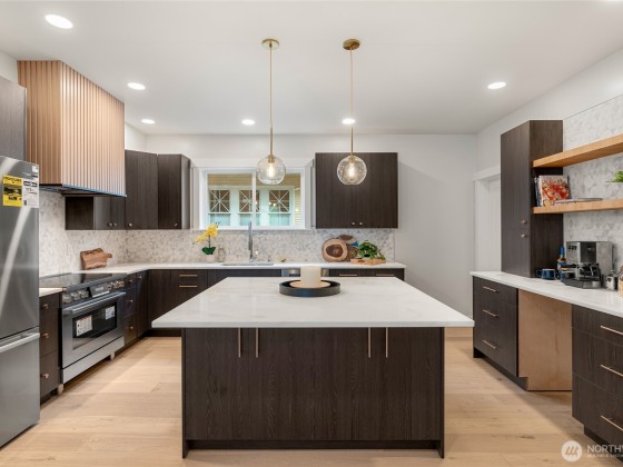 Reimagined modern living in the heart of Capitol Hill. New systems, mini splits, and off-street parking. Complete studs out remodel - everything new and high end. This 5-bedroom + office spans 2,700+ sq ft across three flexible levels—perfect for multi-gen living, working from home, and hosting the holidays in style. The light-filled main level features a custom fireplace, open dining, and a designer kitchen with an ample-sized island and walk-in pantry. Luxe primary suite includes a walk-in closet and a spa-like bath. Upper level adds 3 more bedrooms, while the lower level offers a large bedroom, full bath, office/den, and private entry. Walk to Madison Valley eats, parks, and everything Seattle.