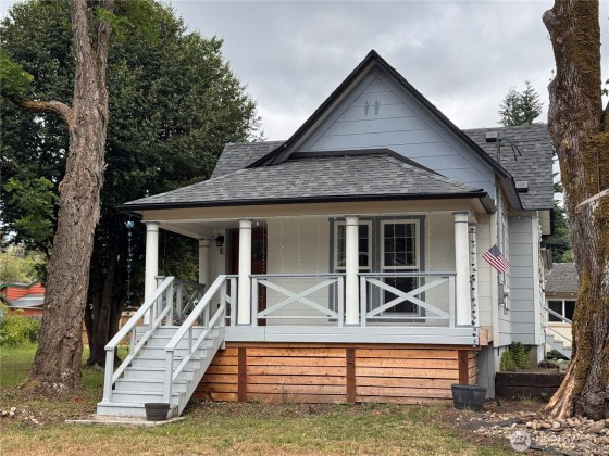 Charming 1901 remodel in peaceful Bucoda! On the Historic Cowlitz Trail- an offshoot of the Oregon Trail, a few miles down from Millersylvania State Park. This 2-bed, 1-bath gem sits on a spacious 0.34-acre corner lot with vintage touches and modern updates. Enjoy an open kitchen/living space with a large island and cozy red brick chimney. Three covered porches invite you to relax rain or shine. Home features a new concrete foundation, updated appliances (washer/dryer included), and a 4-car tandem carport with gravel base.(Could be finished off or used as Gazebo/Pergola. character meets everyday comfort—perfect for first-time buyers or anyone ready to downsize in style. Come discover small-town living at its finest!