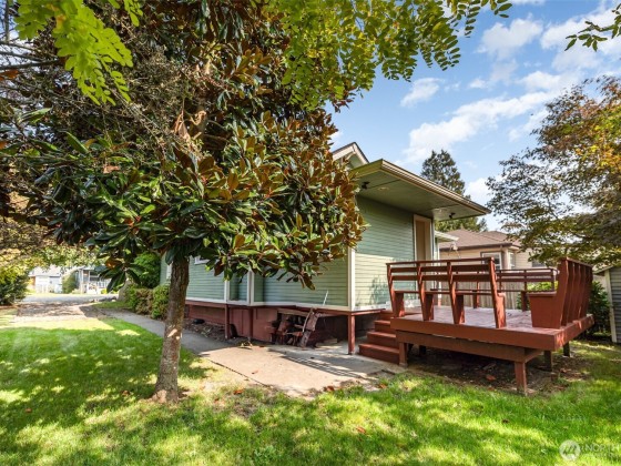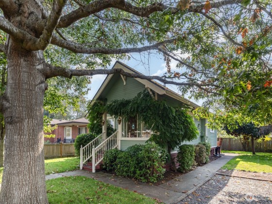 Welcome to this charming home full of character and possibilities! Step into a wonderful partially enclosed front porch for year-round enjoyment. The main level offers a cozy living room, spacious kitchen, bedroom, full bathroom, and generously sized utility room. Upstairs you’ll find two additional bedrooms with unique architectural details and a pop out window. The spacious storage area below the house with its own entrance provides plenty of room for storage or projects. Outdoors, enjoy a partially fenced backyard with a shed and lush established landscaping. The back deck with built-in seating is the perfect spot to gather, relax, and soak in your private oasis. Minutes from I-5, I-405, shopping, and dining.