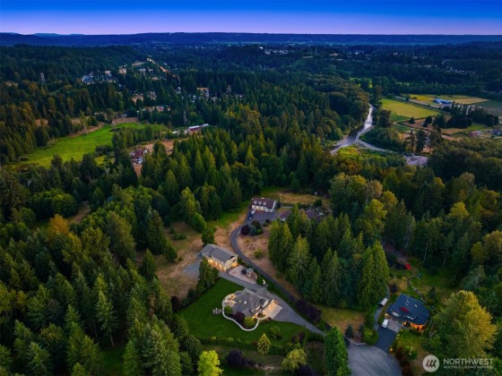 [AN ELEGANT LEGACY ESTATE] Gated community of custom craftsmanship meets rural grandeur. The epitome of pacific northwest grandeur in a 5-acre estate invites an intentional + purposeful life. The 4,500 sq. ft. detached shop, with a refined flex space above, transcends utility to become a sanctuary for creation, passion, or multigenerational living. Fully equipped shop with heated floors, RV bay, office, and upstairs 1,674 sq. ft. flex space expands living potential—an invitation for guests, business, or income The Main House with theater-ready family room, den, and a luminous master suite with spa bath. Surrounded by evergreens, Japanese maples, & vibrant gardens, this estate is designed for the [TIMELESS EXISTENCE OF CREATIVITY + PEACE]