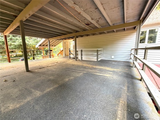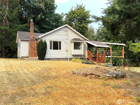 This, move-in-ready, 3-bedroom home offers an inviting open layout with a spacious kitchen at its heart. Recently refreshed with new paint, flooring, and countertops. The great room is anchored by a wood-burning stove set in a beautiful brick hearth..The expansive 700+ square foot covered patio, situated above a 4-car carport, adds outdoor living space.. The dry, walk-out basement with exterior access adds valuable living space, complete with a bathroom. On just under an acre, the tall hedge creates a secluded front yard, while the backyard is a peaceful wooded retreat with a year-round stream. All of this comes with the convenience of quick access to SR-16, making it easy to enjoy a rural setting without extending your commute.