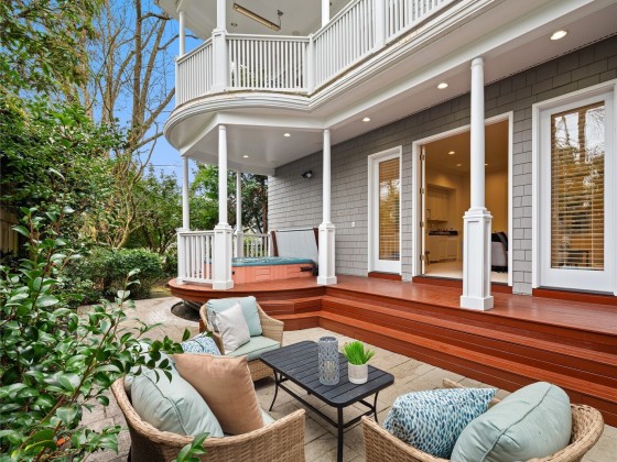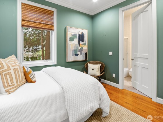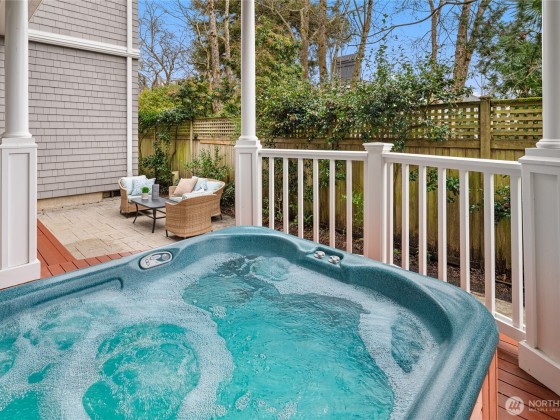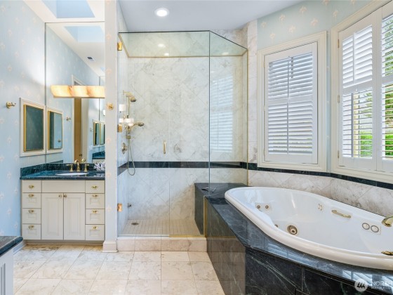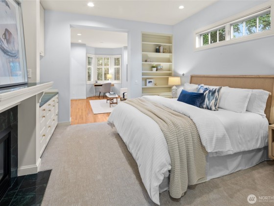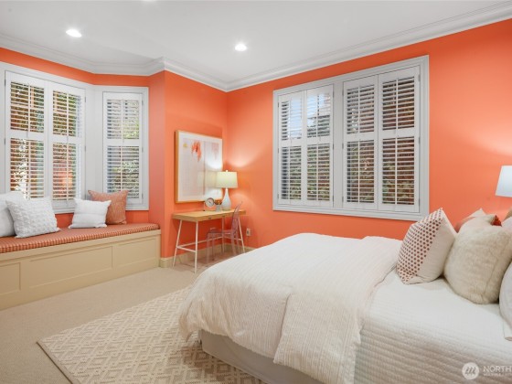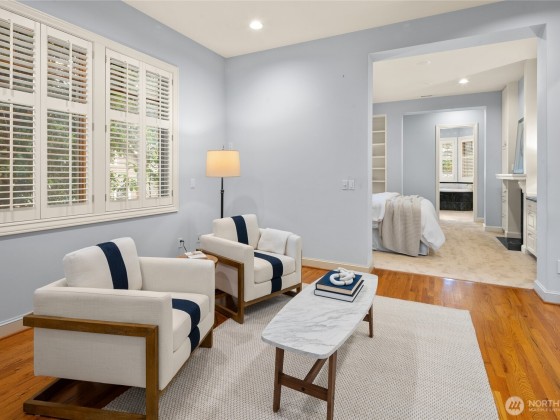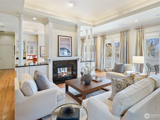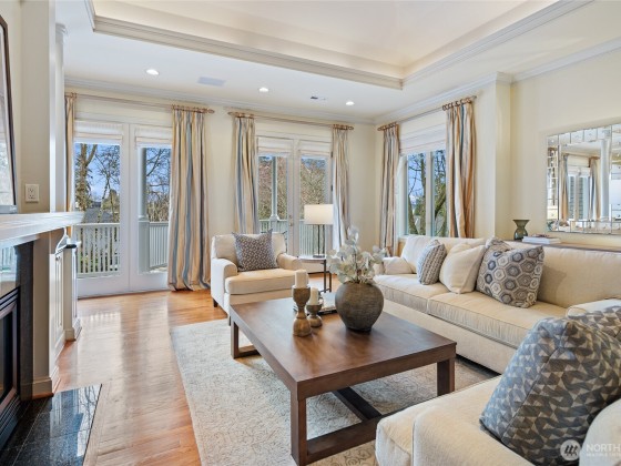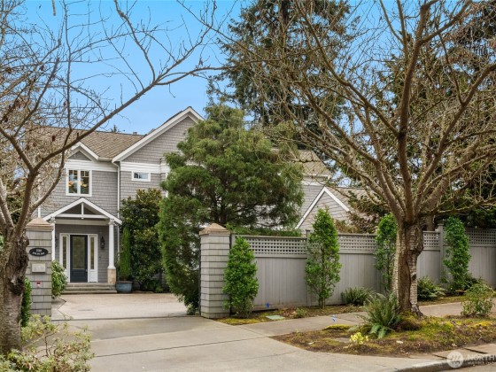 Rare opportunity in desirable Madison Park! 2000 built traditional shingled residence in prime location on beautiful tree-lined street. Two story home with tall ceilings, open, reverse floor plan ensuring privacy & ease of use. Perfect home for fine entertaining or relaxed living. Crown moldings, plantation shutters, slab countertops, French doors, ample storage, columns, 3 fireplaces, 4 bedrooms w/ attached baths, including deluxe primary suite w/ fireplace, dressing room, office & luxurious bath. Private decks, one w/ hot tub! Radiant heat, air conditioning, and ELEVATOR!!!!Easy lock up and go w/ gated drive, & completely fenced. Excellent proximity to shops & restaurants of Madison Park, plus beach, Arboretum, UW, Downtown & Eastside.