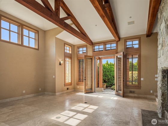 Rare single-level living and exceptional craftsmanship in Clyde Hill's coveted Mercia neighborhood. Sited on a flat, spacious, corner lot with mature landscaping and circular drive. Soaring, lodge-like spaces with Whistler-style timbers, vaulted ceilings and stone fireplaces. Fabulous floor plan for entertaining including generous patio off the main living areas with French doors for easy indoor/outdoor flow. 4 bedrooms plus office with handsome built-ins and fireplace, 3.5 baths and a 3-car garage. One of the most desirable neighborhoods on the Eastside just minutes away from the world-class amenities of Downtown Bellevue.