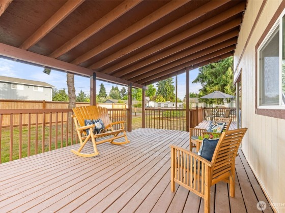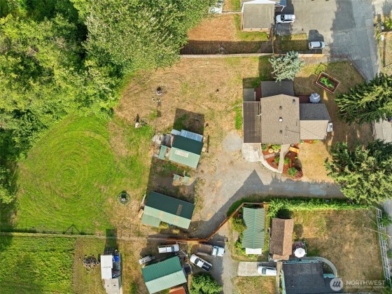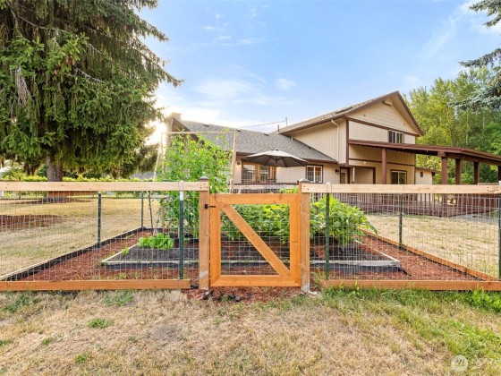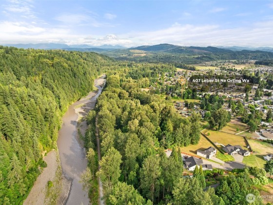 With a view of Mount Rainier, nearly an acre of land, and just blocks from downtown Orting, this home blends nature and convenience beautifully! The main-floor primary suite features a spacious bathroom with a large walk-in shower, while vaulted ceilings and thoughtful updates throughout make the home feel fresh and inviting. Recent upgrades include new siding, exterior paint, a back deck, newer roof (8 years old), and new fence. Situated on a quiet dead-end street and bordering 10 acres of wooded vacant land, the property offers a peaceful backdrop and easy access to the Carbon River and nearby trails. Garden beds are ready for taking over, two bonus outbuildings provide space for storage or future projects. Come see your new home today!