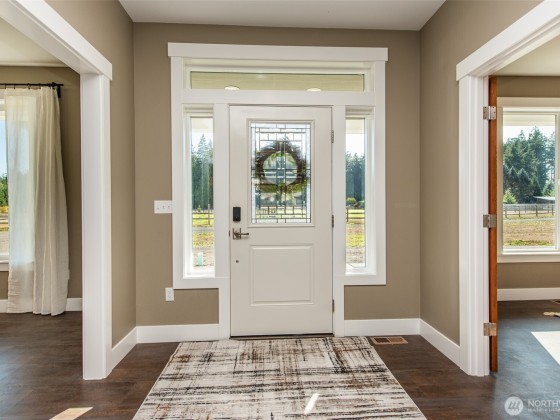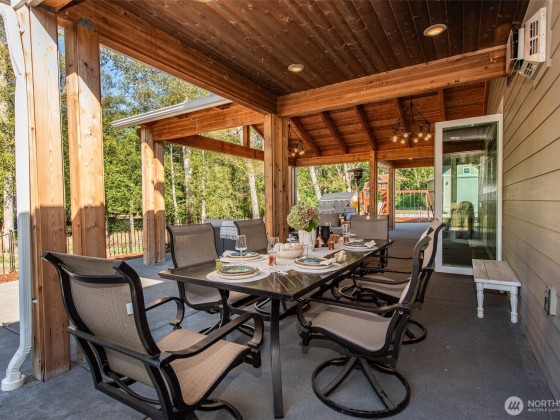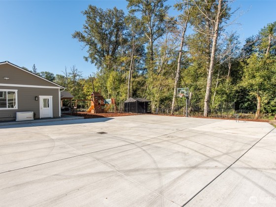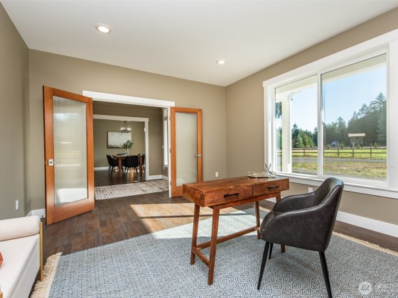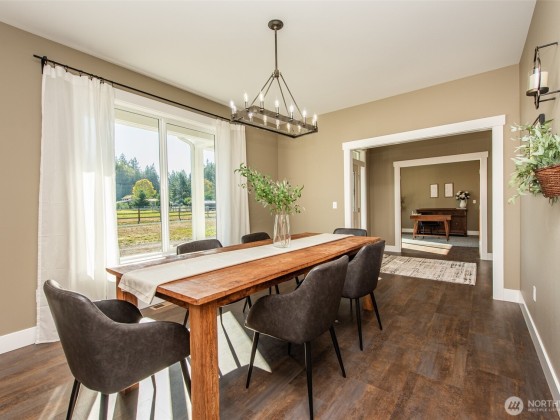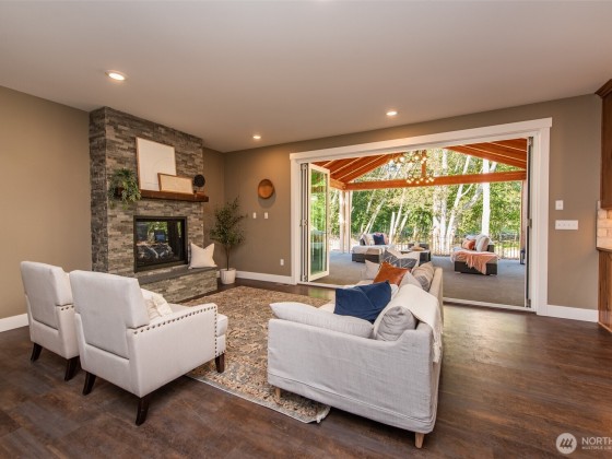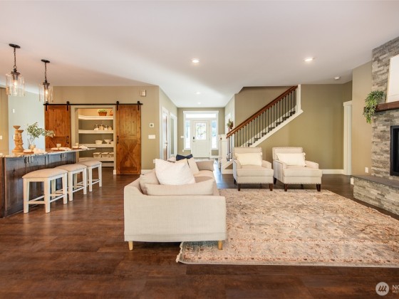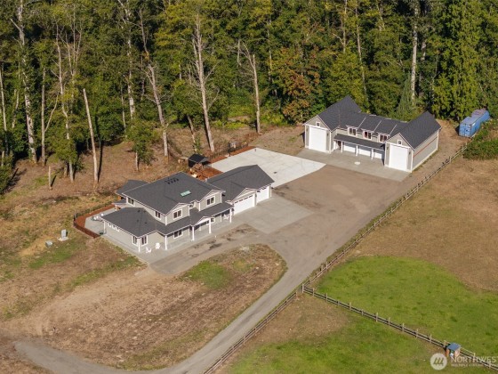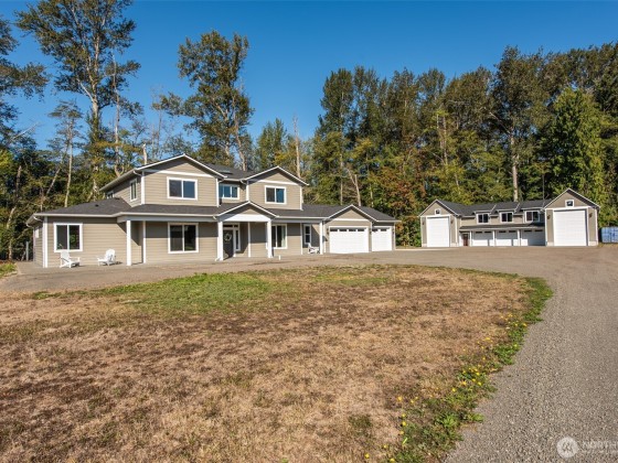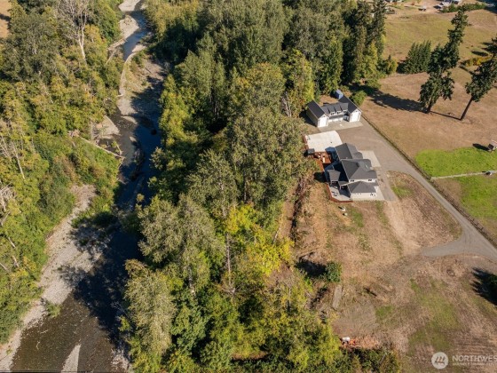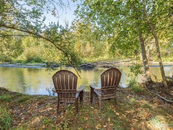 Stunning 3,392 sq ft home on 4.5 acres with 435 ft of private Dungeness River frontage. A chef’s kitchen with expansive island flows into open living with propane fireplace and 4-panel folding doors opening to a 600 sq ft covered patio with built-in fire feature for year-round entertaining. The primary suite offers double walk-in closets, a tiled shower with seat, soaking tub with mountain views, and patio access. The detached “garage mahal” boasts RV/boat bays, shop, and upper storage with roughed-in studio. Trails, playground, basketball court, RV hook-up, and Olympic Mountain views add to the lifestyle. Watch salmon run in the fall with fenced pasture views year-round—just 10 minutes to Sequim and 20 to Port Angeles.