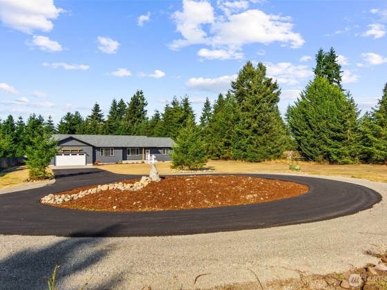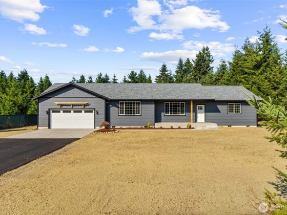 New construction in Grand Mound, move-in ready! Over an acre, loads of Privacy, and no HOA! Less than 5 min from I-5, this property includes RV-parking, and room for a 4,000Sqft detached shop! This split floorplan is thoughtfully laid out, with loads of features you've been looking for: A/C, large garage, craftsman millwork, to name a few. The kitchen boasts quartz countertops, under cabinet lighting, and kitchen island with room for barstools. Vaulted ceilings and plenty of natural light make this home open and spacious, while the pocket doors, dimmer switches, and locally made soft-close cabinetry are just a few examples of what make daily life a breeze in this home. Ask how this home qualifies for a 1% lender credit!