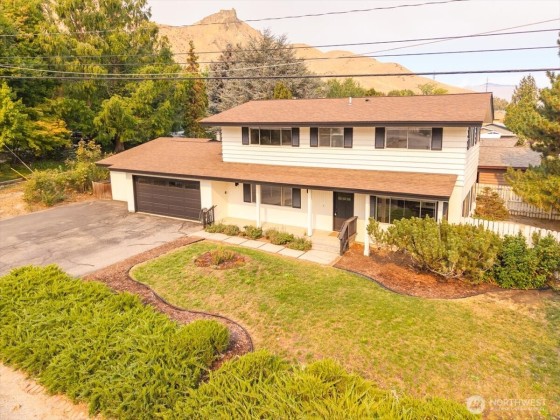 This classic 2-story home is in the heart of Wenatchee - just minutes from both shopping and recreation. Outside you will find fresh paint, a welcoming front porch, lots of extra parking, and a very private back yard for gathering. The interior has new paint, window blinds, floor coverings, updated kitchen appliances, and a new heat pump in 2024. The main floor features a large living room with fireplace for cozy evenings, spacious dining room with room for everyone, and a wheelchair accessible bath that leads to a separate recreation room for maximum possibilities. There are also zero steps from the attached 2-car garage into the home. The upper level has four generous bedrooms including a primary suite with attached 3/4 bath.