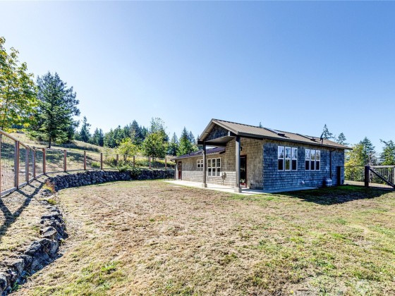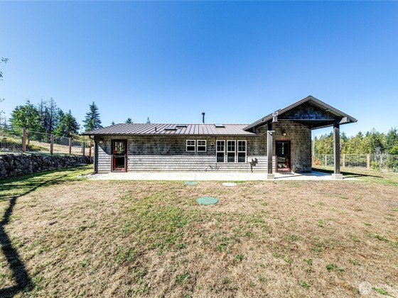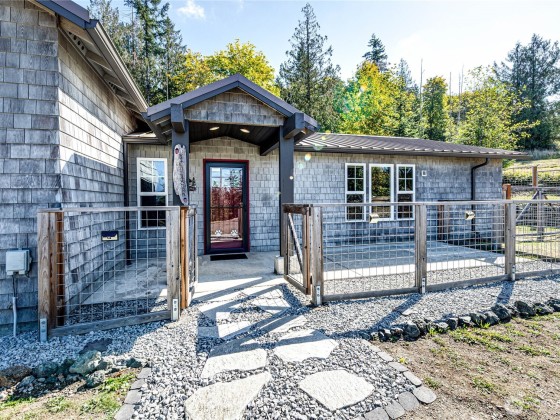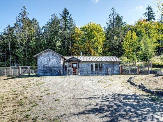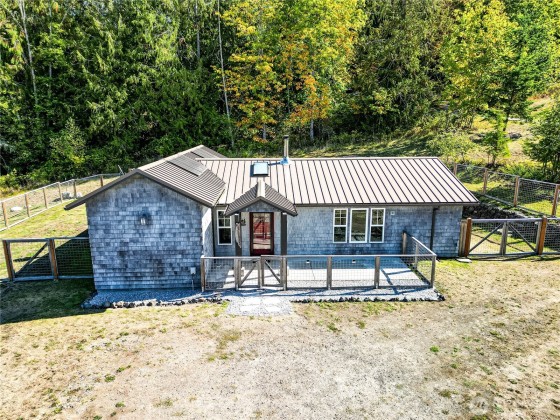 Nestled on an open 5-acre lot, this charming shingle-style cabin offers the perfect blend of privacy, comfort, and sustainable living. Tucked away in a serene woodland setting, the home features a durable metal roof, solar panel system, and a fully fenced backyard—ideal for pets to roam safely. Inside, you'll find engineered wood floors, vaulted ceilings, and an open-concept living space. The kitchen is equipped with stainless steel appliances, a countertop composter, and a spacious walk-in pantry. The primary bedroom is complemented by a guest bedroom at the end of the hallway. The full bathroom conveniently doubles as a laundry area. Quiet and peaceful 5 acres. A unique opportunity to own a home in desirable in Blyn Springs Estates.