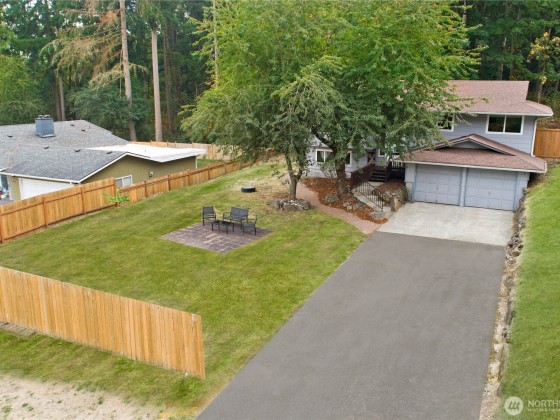Welcome Home! This 3-bedroom, 2.5-bath split-entry offers comfort and convenience. The upper level features 3 bedrooms, a spacious living & dining area, a wood-burning fireplace with w/a brick mantle, and direct access to the back deck from the dining room. Downstairs, you’ll find a bonus room with exterior access, a utility room, half bath, and large flex-space or extra storage, plus a second wood-burning fireplace: fresh paint and new vinyl plank flooring downstairs, a new water heater, and an 8-year-old furnace. Set on a .22-acre lot backing to trees for privacy, the home provides plenty of parking, including RV space. Conveniently located near two major freeways for an easy commute and close to shopping, schools, and everyday amenities.
