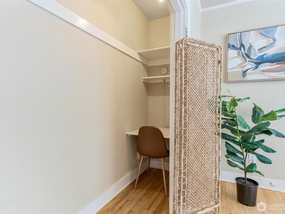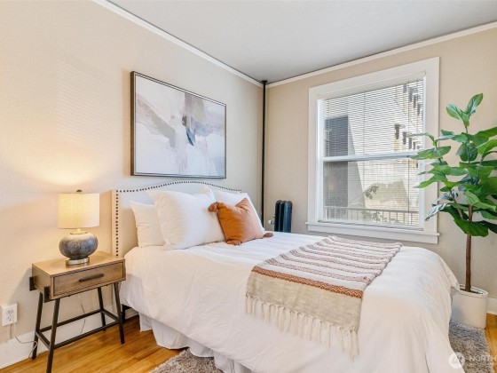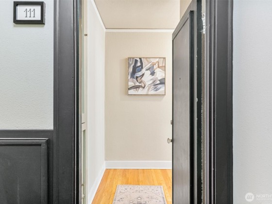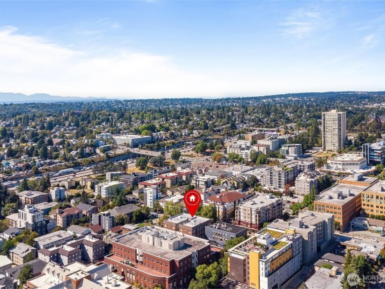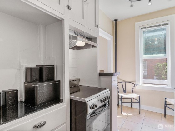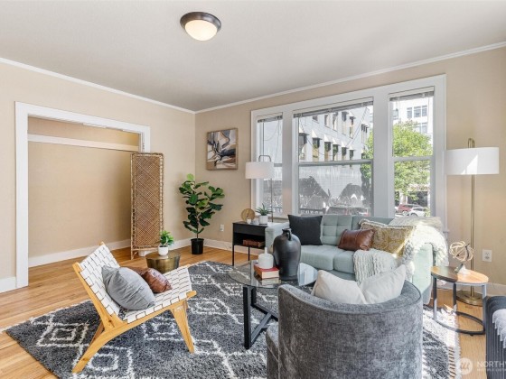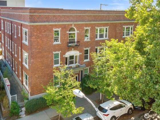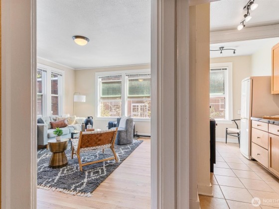 Lease/Purchase option! Main Level Corner Unit, NO Rental Cap! Beautifully renovated 1 bed, 1 bath corner condo has been freshly painted and updated while retaining its timeless character. Light-filled interiors showcase oversized windows, tall ceilings and newly refinished original hardwoods. The kitchen with eating area blends functionality with vintage appeal, spacious living room offers flexibility for studio living with a Murphy bed possibility. Updated Full bathroom, new tile floors. Community perks include secure laundry and extra storage, with park across the street. Enjoy tree-lined sidewalks, blooming gardens and the energy of the University District—just blocks to UW, Light Rail, Burke-Gilman Trail, cafés, shops, and dining.
