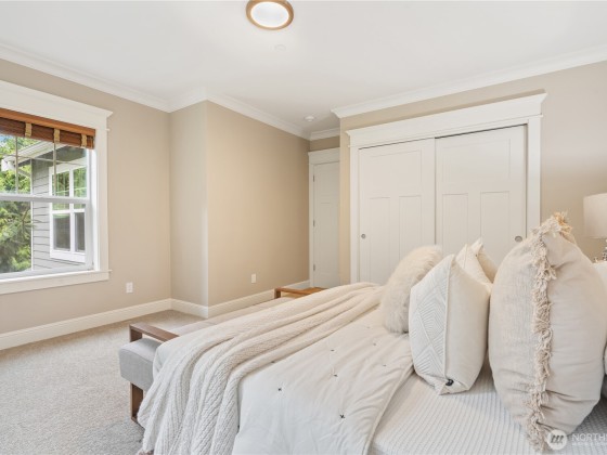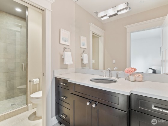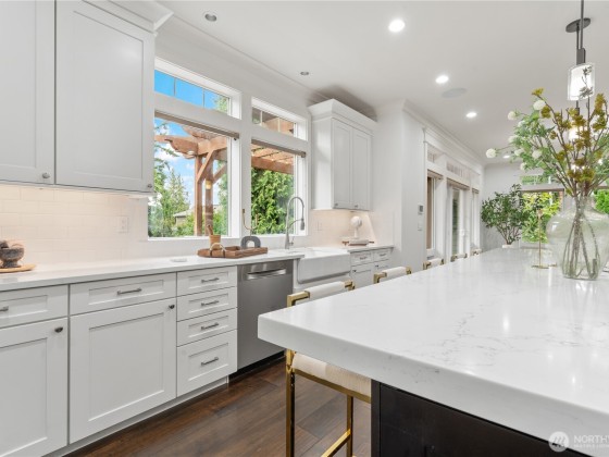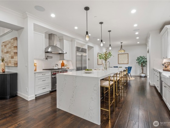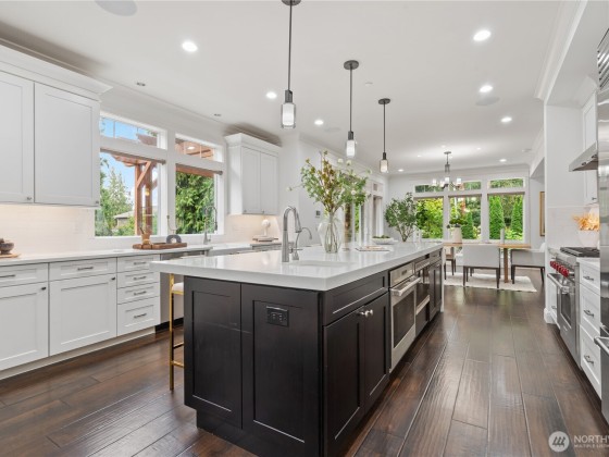 Stunning newer construction by renowned Aspen Homes in the heart of Mercer Island! This 7 bed, 6 bath smart home sits on a desirable corner lot with lake views and 4,705 SF of luxurious living. Soaring 18’ ceilings and expansive windows fill the home with natural light. Chef’s kitchen features a quartz waterfall island and top-tier appliances. Vaulted primary suite with spa-like bath offers true retreat. Smart automation, security, central vac, dual EV charging, and generator hookup. Enjoy year-round entertaining on the lake-view deck with built-in fireplace and BBQ. Fully fenced yard and ample parking on three sides. Easy access to I-90 and top-rated Mercer Island schools. Move-in ready—refined island living at its best!