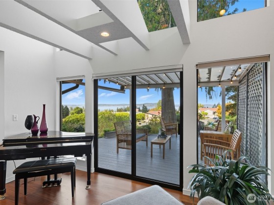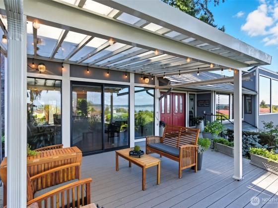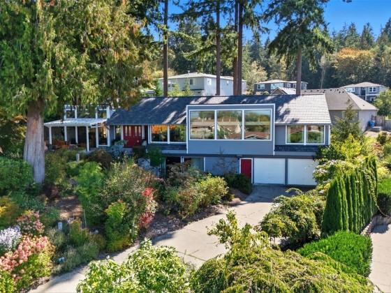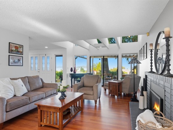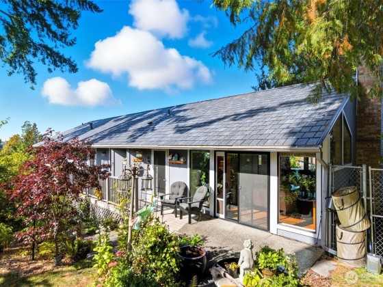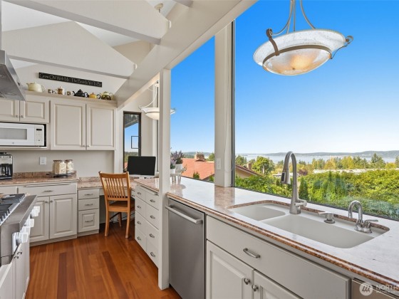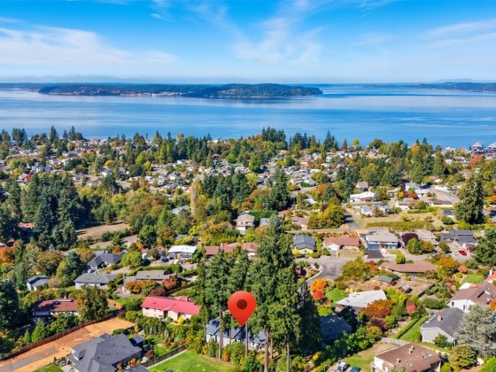 Spectacular 180-degree Puget Sound views command immediate attention from this stunning residence in historic Steilacoom. These breathtaking vistas transform every moment within this meticulously maintained home into a living masterpiece. The heart of this exceptional property lies in the"eat-in" chef's kitchen boasting double ovens & gas cooktop, the panoramic water & majestic mountain views provide a stunning backdrop for meal preparation. Brazilian cherry hardwood flooring throughout the main floor & new gas fireplace provides a captivating focal point. Dedicated office space caters to modern professional needs. Flourishing low-maintainance garden areas adorned with established fruit trees creating your own private orchard sanctuary.
