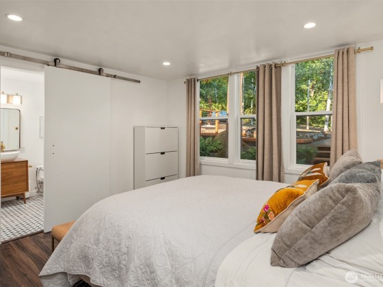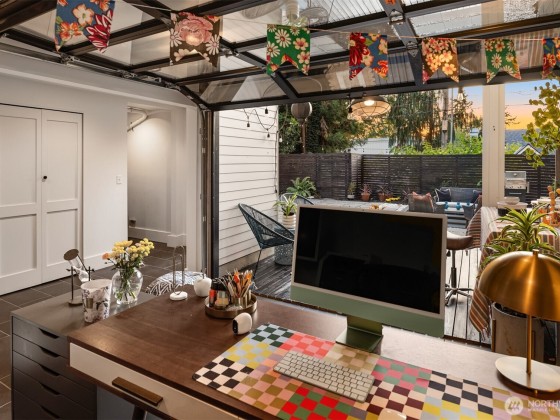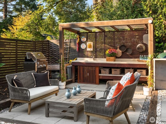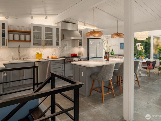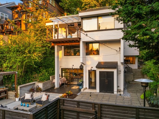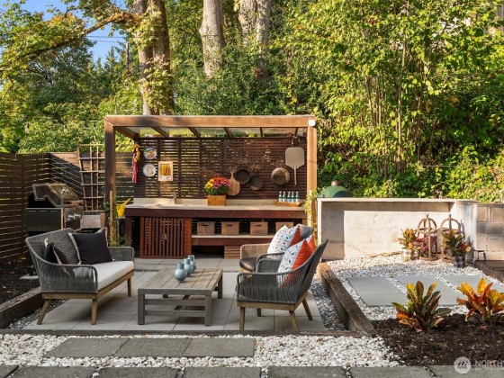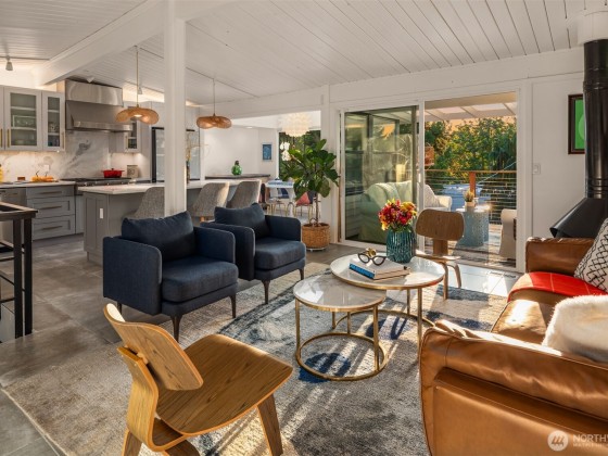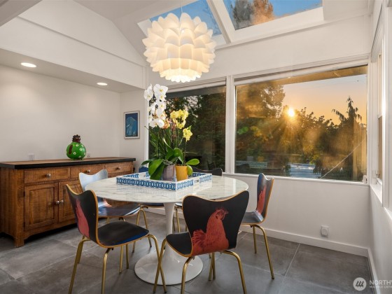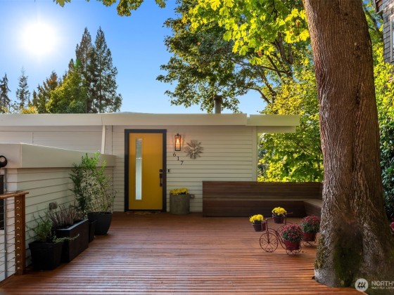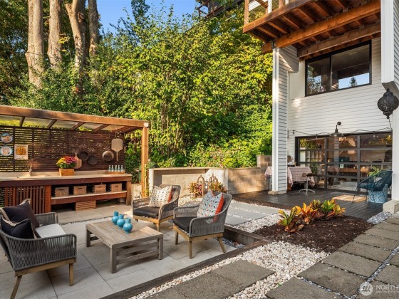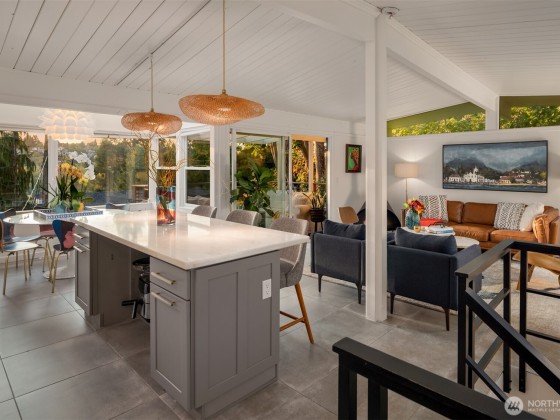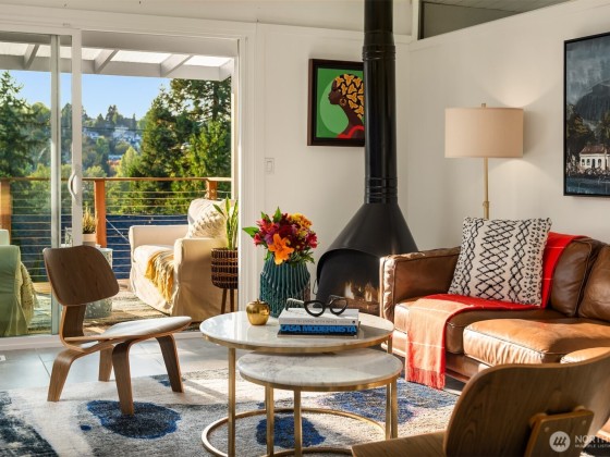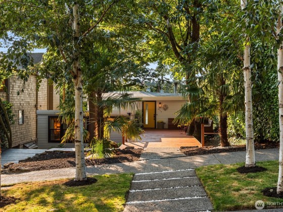 Mid-century Washington Park home, evokes the work of progressive Japanese architects of the era. This residence captures urban cool with a split-level layout that flows with ease. Vaulted ceilings & expansive windows fill interiors with light. Marble counters, high-end appliances & vintage Preway fireplace add timeless style. A heated terrace feels like a treehouse while the front deck shaded by mature trees offers neighborhood charm. Indoor-outdoor living connects to a stone patio, cabana & entertaining area. Wine lovers enjoy a naturally cool cellar (350+ bottles). Versatile rooms & serene primary suite with walk-in closet & marble bath with heated floors complete this rare opportunity in one of Seattle’s most coveted neighborhoods.